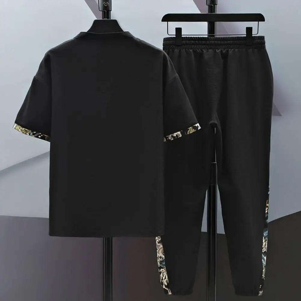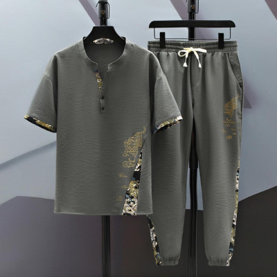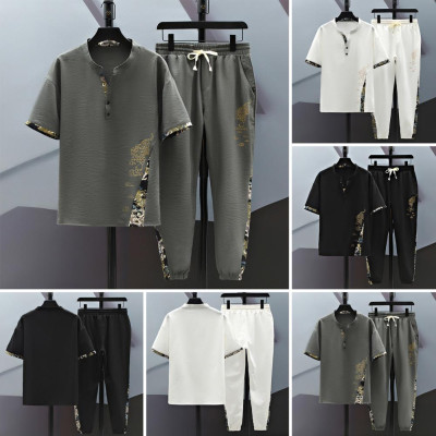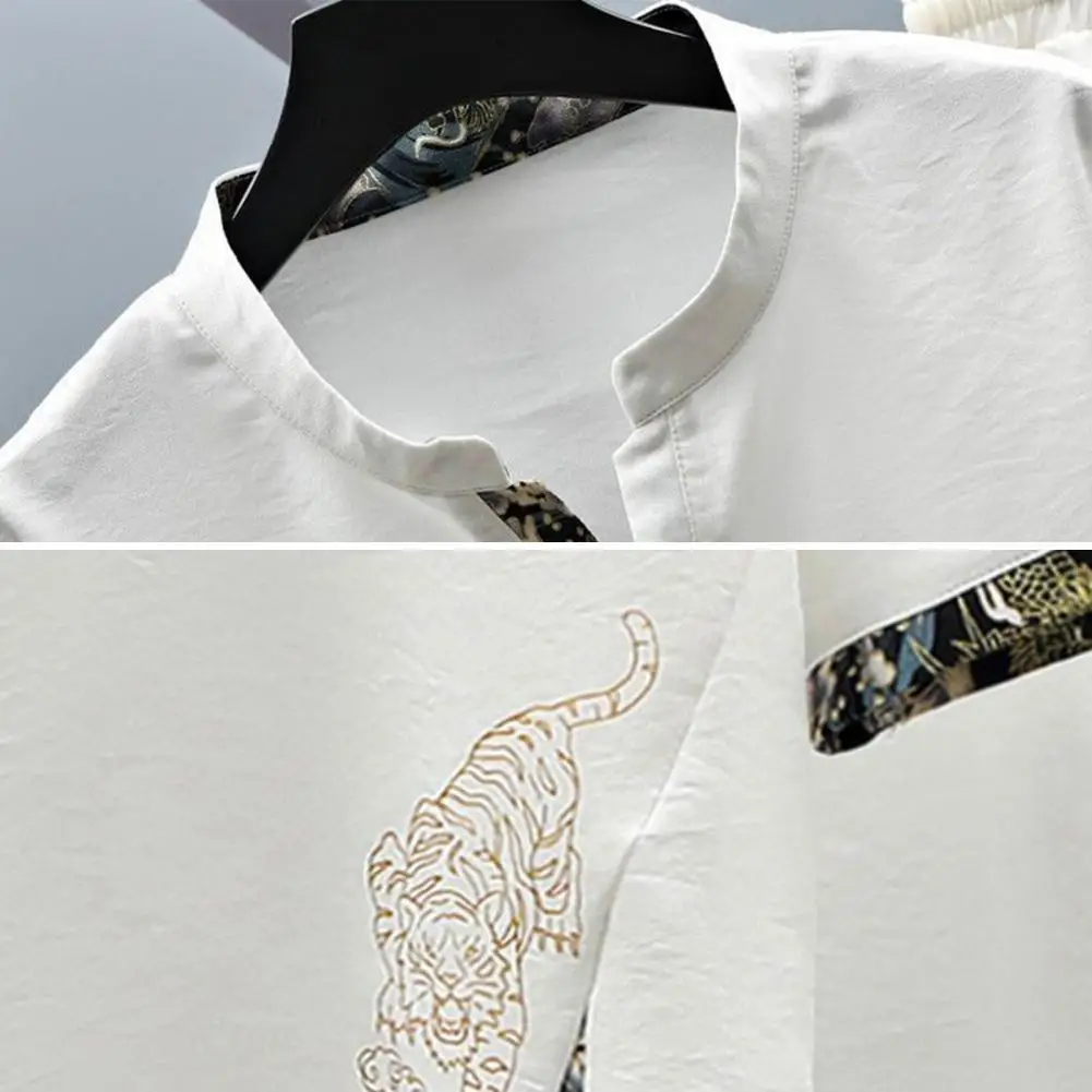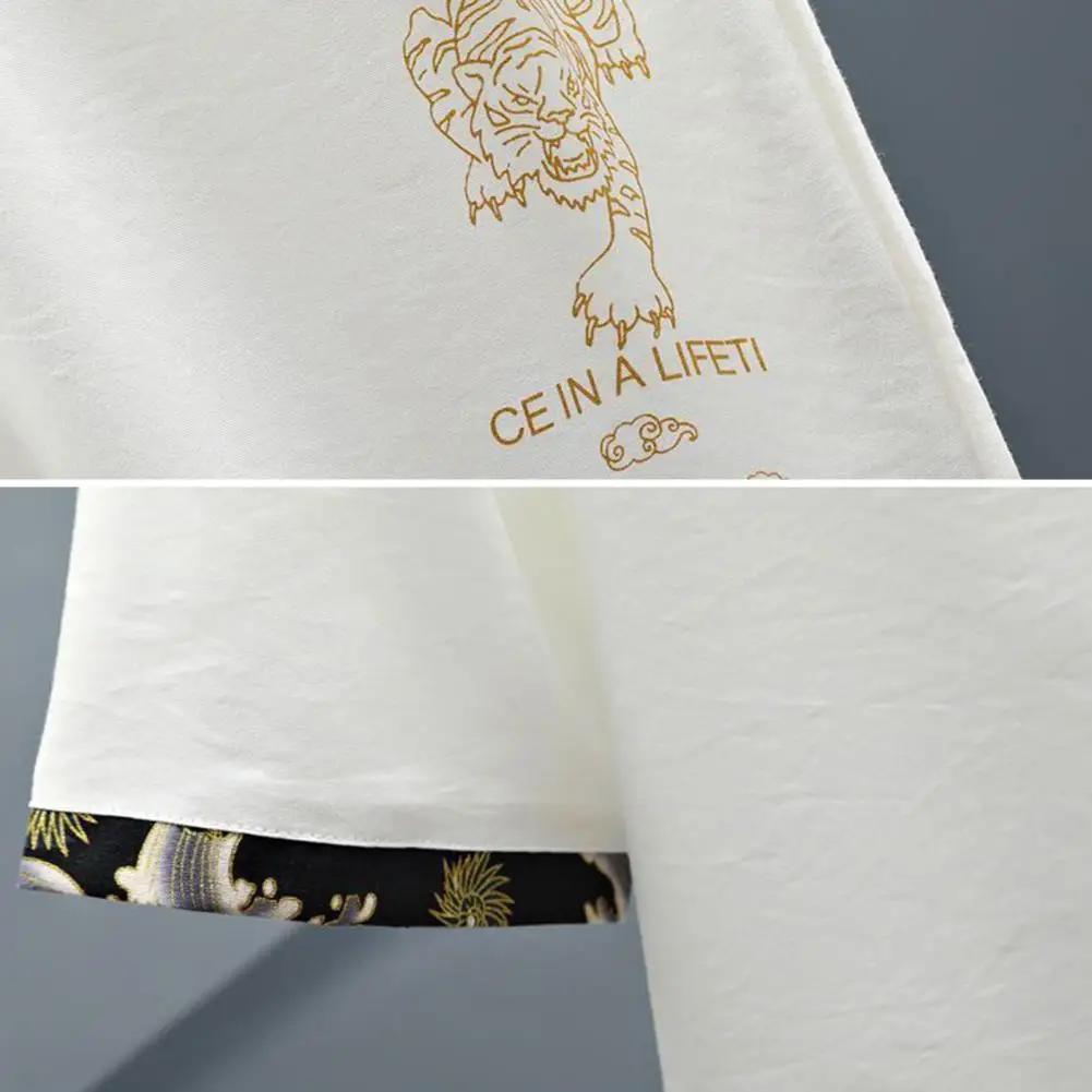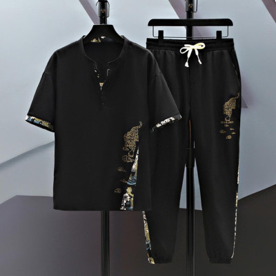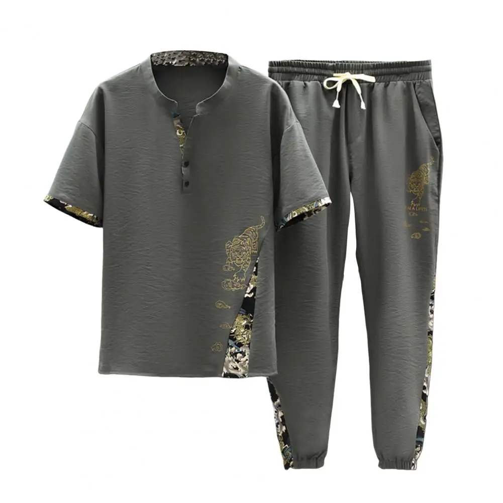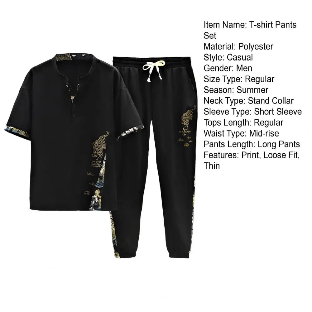 بدلة صيفية غير رسمية بدلة رجالية غير رسمية بطبعة نمر مع ياقة قائمة تيشيرت بخصر مرن برباط طقم سراويل ملابس صيفية