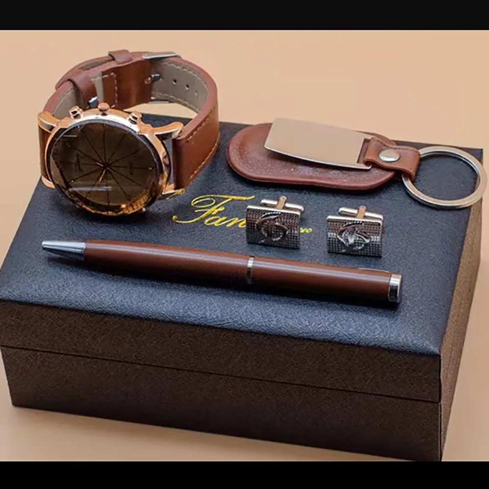 رجل علبة ساعة هدية مع صناديق تعبئة إكسسوارات عالية الجودة الفاخرة الكوارتز ساعة اليد المفاتيح أزرار أكمام القلم رجالي ساعات مجموعات للرجال الصبي هدية