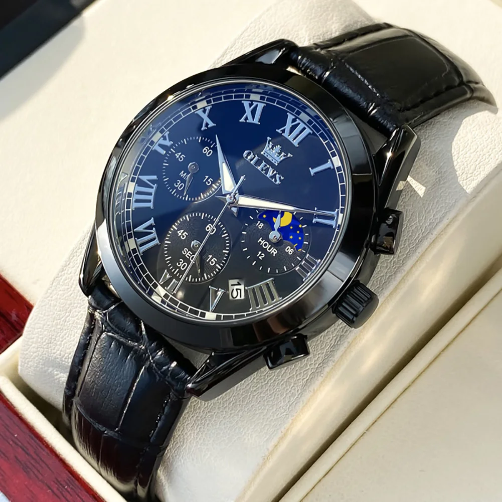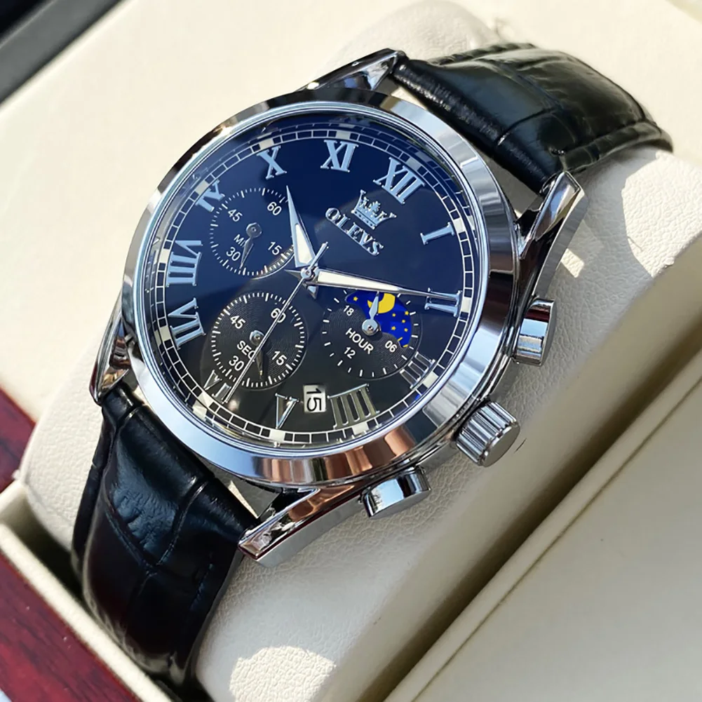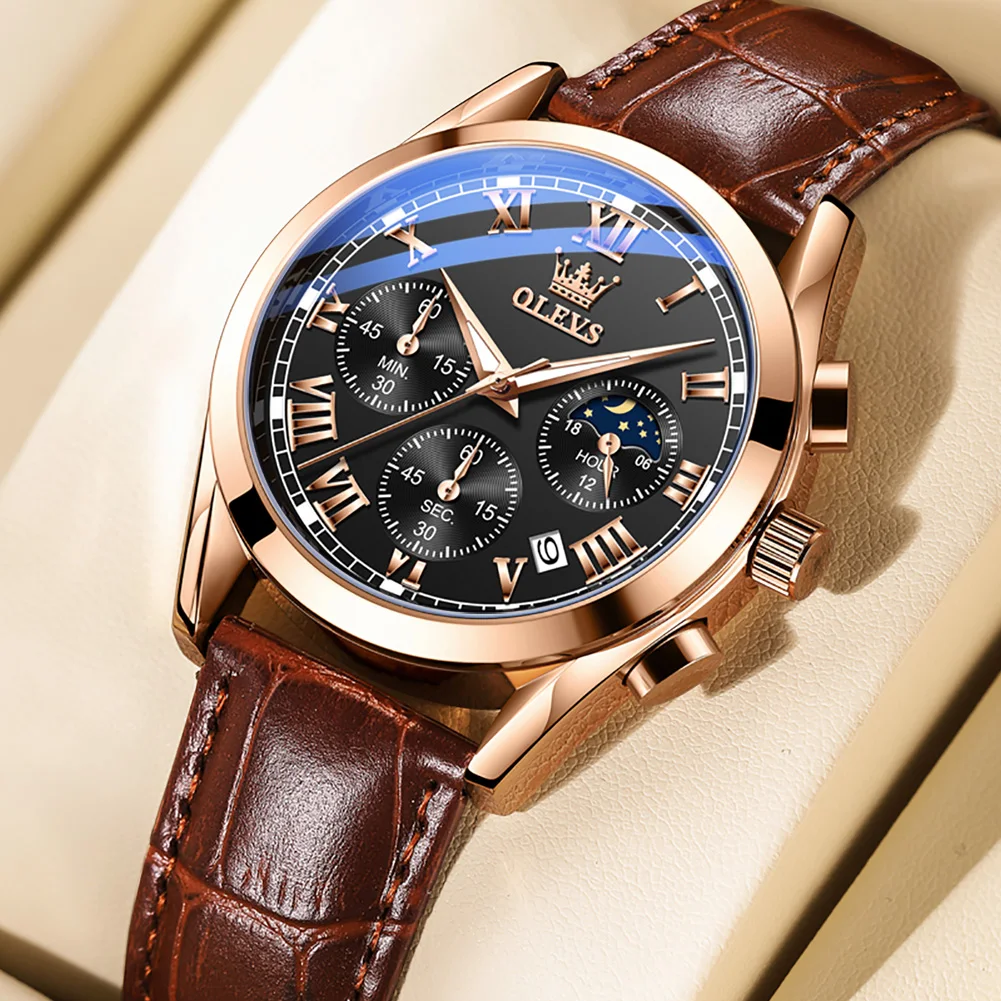 OLEVS 2871 ساعات رجالي براون جلد العلامة التجارية الفاخرة تاريخ مقاوم للماء مضيئة كرونوغراف ساعة كوارتز الرجال Relogio Masculino